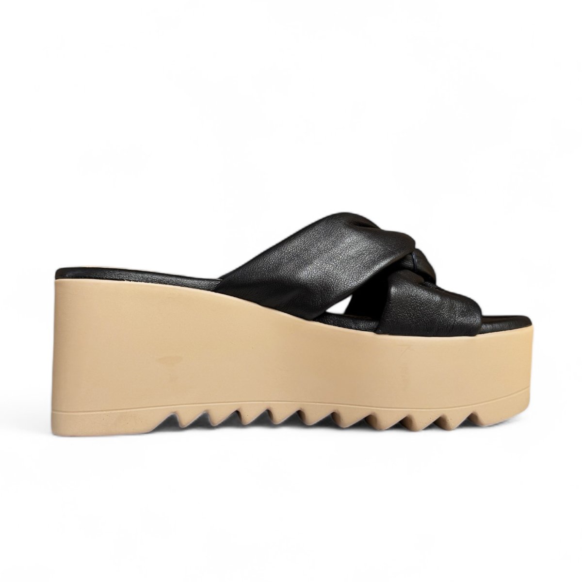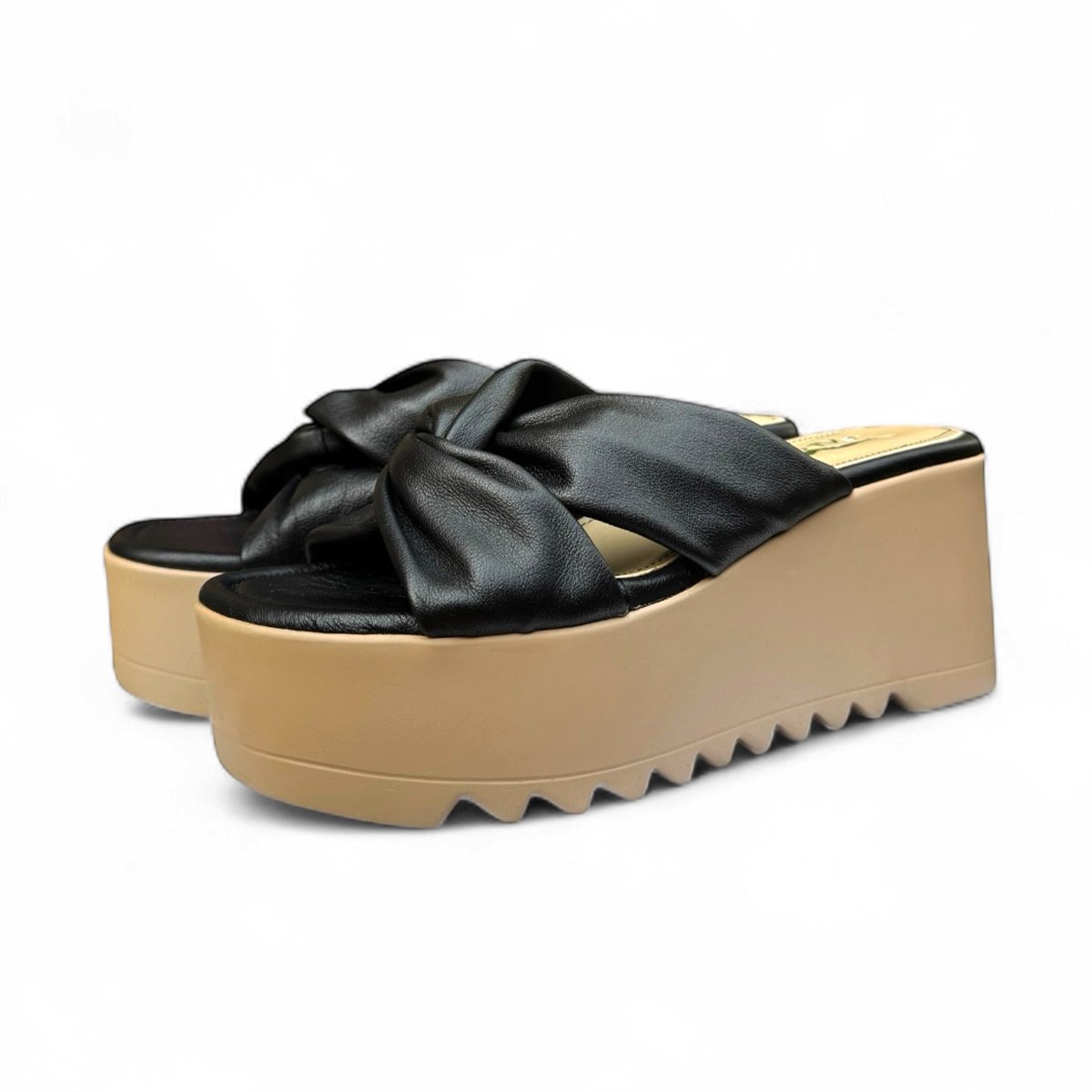صندل بتصميم عصري مصنوع من جلد طبيعي فاخر بلون أسود أنيق يضفي لمسة راقية على إطلالتك.